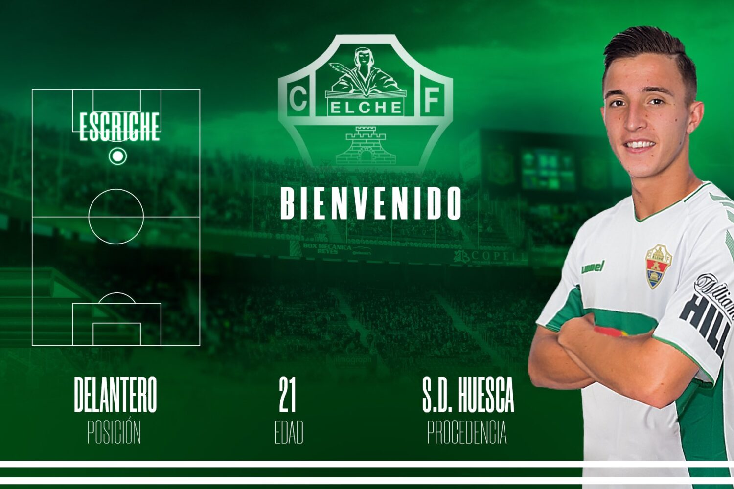 Nuestro jugador Daniel Escriche Romero jugará lo que resta de temporada en el Elche CF tras el acuerdo alcanzado por la SD Huesca, propietaria de sus derechos, y la entidad franjiverde. El castellonense se incorporará de inmediato al trabajo con sus nuevos compañeros y se pondrá a disposición del cuerpo técnico para los próximos compromisos.